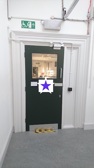 The next step is to navigate your way safely through the revolving doors at the front of the building: