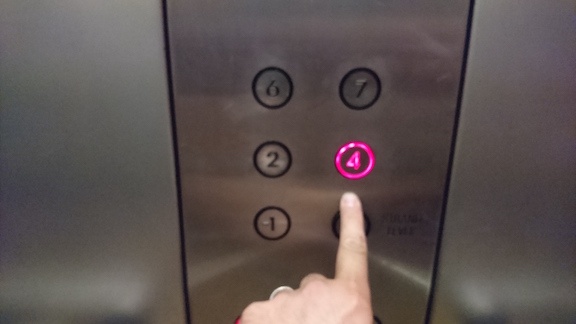 Press the button numbered 4 to instruct the transportation device to ascend to the fourth floor: