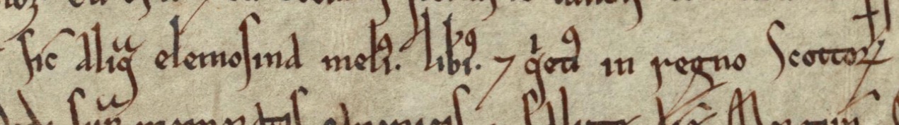 There are cases where we can see that the scribe has chosen their own form of ‘sicut’ clause. Richard bishop of St Andrews in the charter (H 2/10/83: 1172 × 1178) confirming of the donation of the church of Kennoway by Merleswain son of Colbán to St Andrews Priory, has a ‘sicut’ clause which reads ‘as any alms are possessed most freely and quietly by any church in the kingdom of Scotland’ (sicut liberius et quietius aliqua elemosina ab aliqua in regno Scotie possidetur ecclesia). Merleswain’s own charter donating the church (H 3/49/1: 1165 × 1178), by contrast, gives no reference to the Scottish kingdom in its ‘sicut’ clause. Returning to Matthew bishop of Aberdeen, there is also an example where the ‘sicut’ clause in his confirmation charter refers to the kingdom whereas the charter of the donation he is confirming does not. This is the confirmation (H 2/1/2: 1172 × 1185) of the donation of the church of Tarland by Morgán mormaer of Mar to St Andrews Priory (H 3/18/1: 1165 × 1171). The ‘sicut’ clause of Morgán’s charter reads ‘as any alms are most freely and quietly held and possessed in Scotia’ (i.e. Scotland between the River Forth and the River Spey) (sicut aliquam elemosinam liberius et quiecius habent in Scocia et possident), whereas Bishop Matthew’s confirmation reads ‘as these alms which are held and possessed most freely and quietly in the kingdom of Scotland’ (sicut illas elemosinas quas liberius et quietius tenent et possident in regno Scotie). This slightly cumbersome phraseology is repeated in another of Bishop Matthew’s charters (H 2/1/3: 1172 × 1183), this time confirming the donation by Countess Agnes, Morgán’s wife, of the church of Meigle to St Andrews Priory (H 3/18/5: 1163 × 1178).[9]