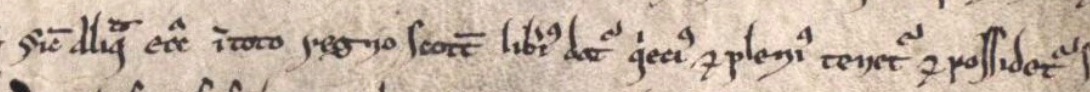 It has been pointed out that in Scottish charters (but not their English counterparts) a particular region or the kingdom itself might be given as the point of reference.[6] Indeed, towards the end of the twelfth century it became increasingly common to refer to the ‘kingdom of the Scots’ or ‘kingdom of Scotland’ in this way in a ‘sicut’ clause.[7] For example, in Edgar son of Domnall lord of Nithsdale’s charter of donation of a church to Holyrood Abbey (H 3/34/3: 1185 × 1211), it was said that it was to be held ‘as any church in the whole kingdom of the Scots is most freely given and most quietly and fully held and possessed’ (sicut aliqua ecclesia in toto regno Scott’ liberius datur quiecius et plenius tenetur et possidetur).